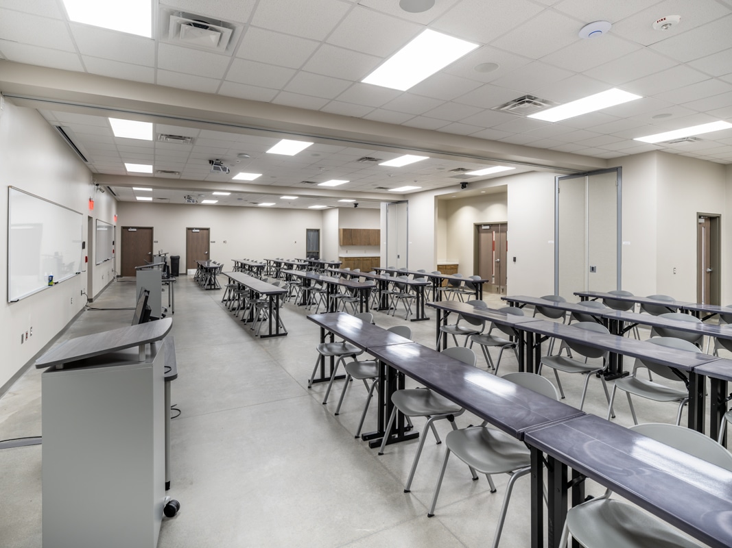 The Workforce Center at the UAHT Texarkana campus integrates industry, general education and the Collegiate Academy programs into a centralized building, providing opportunities for new and expanded curriculum. Accommodating the growing demand and economic development for the college and the city, the program of the new 13,000 square foot building includes a large welding lab and classroom, general education classrooms, a small administrative suite, and a large multi-purpose space that can be partitioned off for smaller instructional functions.